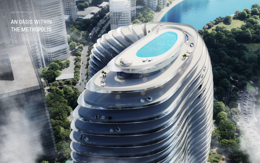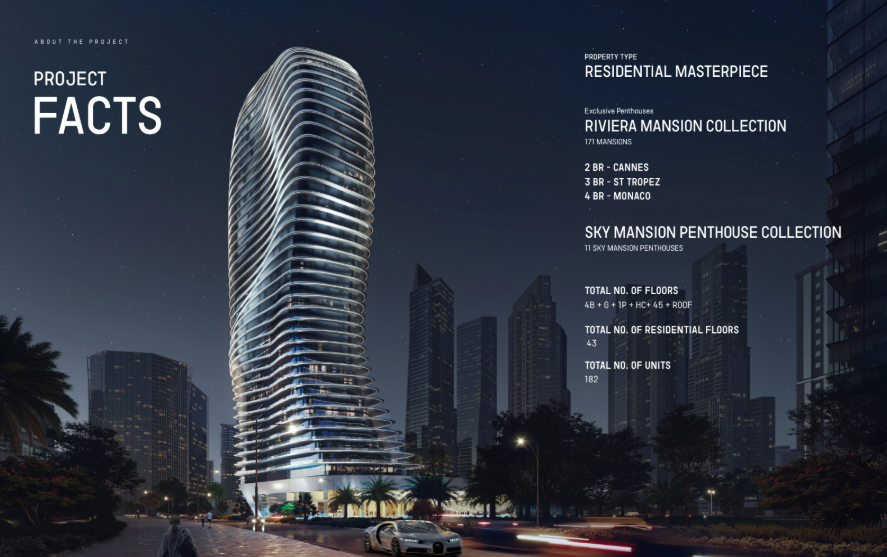 - Concept & Inspiration: The architectural 'hyper form' is characterized by fluid lines and subtle contours. It is inspired by the flair of the French Riviera, depicting L'Art de Vivre. The design draws inspiration from Bugatti's supercars, embodying the brand's visionary spirit, and features high-end finishes and a state-of-the-art smart home system. The hyper tower is intended to be a new icon of architectural prowess.